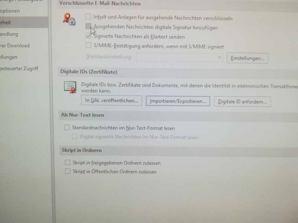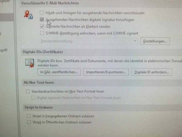 Outlook-2016 - Zertifikat einbinden