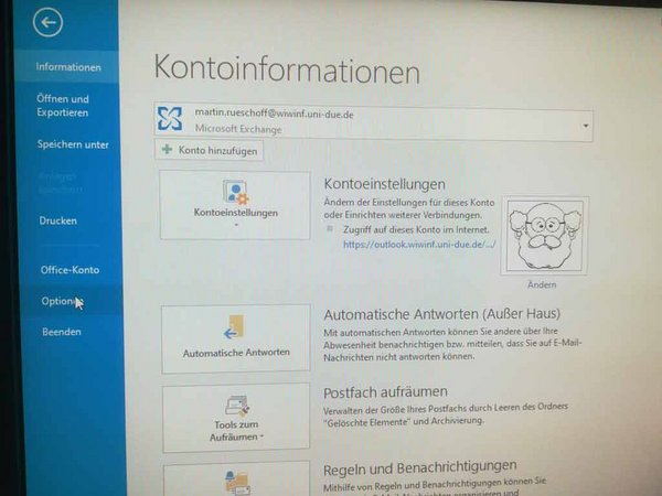 Outlook starten und im Menü unter "Datei"