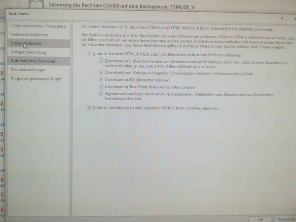 Im Trust Center rechts "Einstellungen für das Trust Center" wählen.